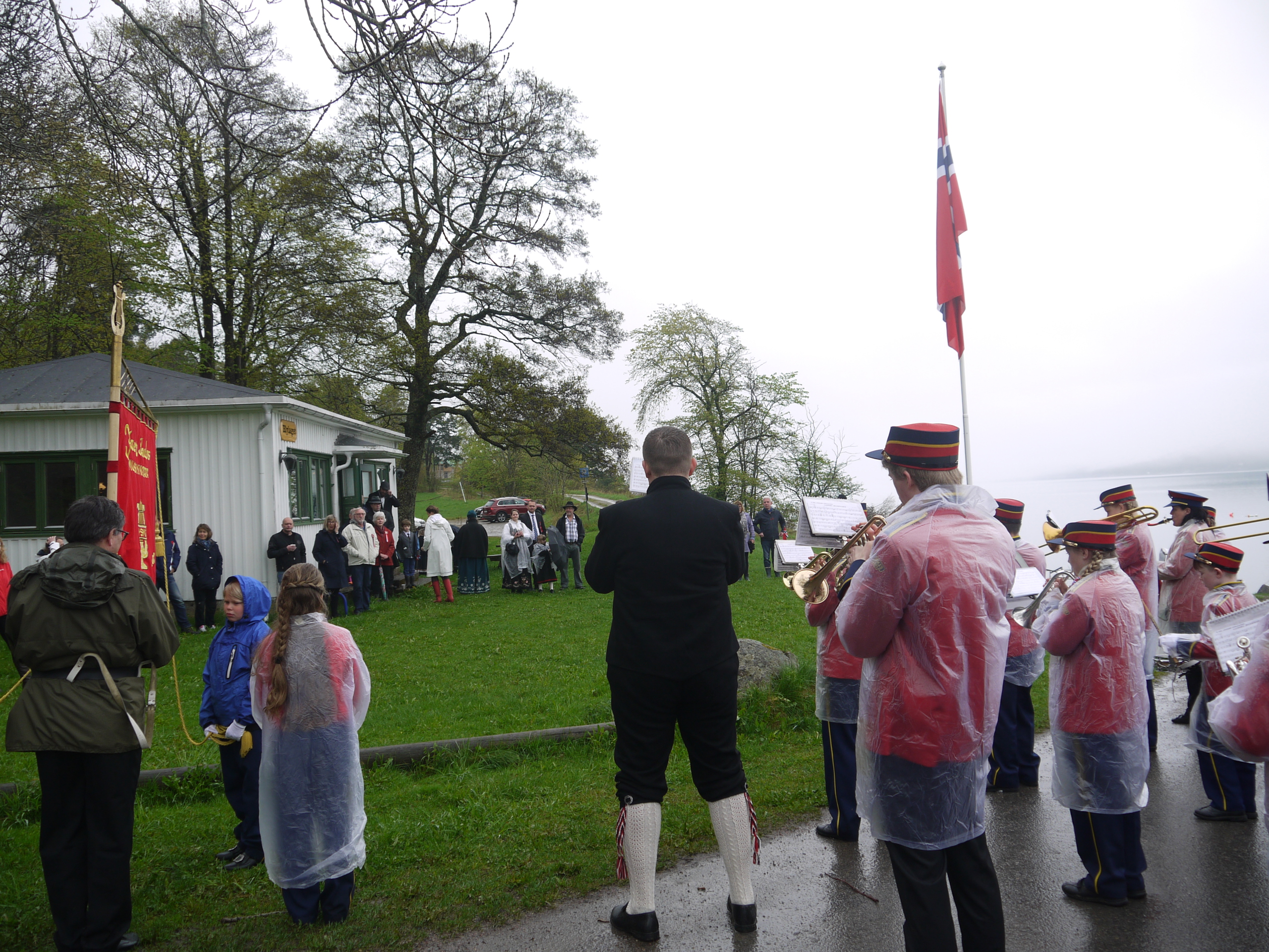 Bilder fra flaggheisingen ved Velhuset 17. mai. Jaer Skoles Musikkorps sørget, tradisjonen tro, for flott musikk.