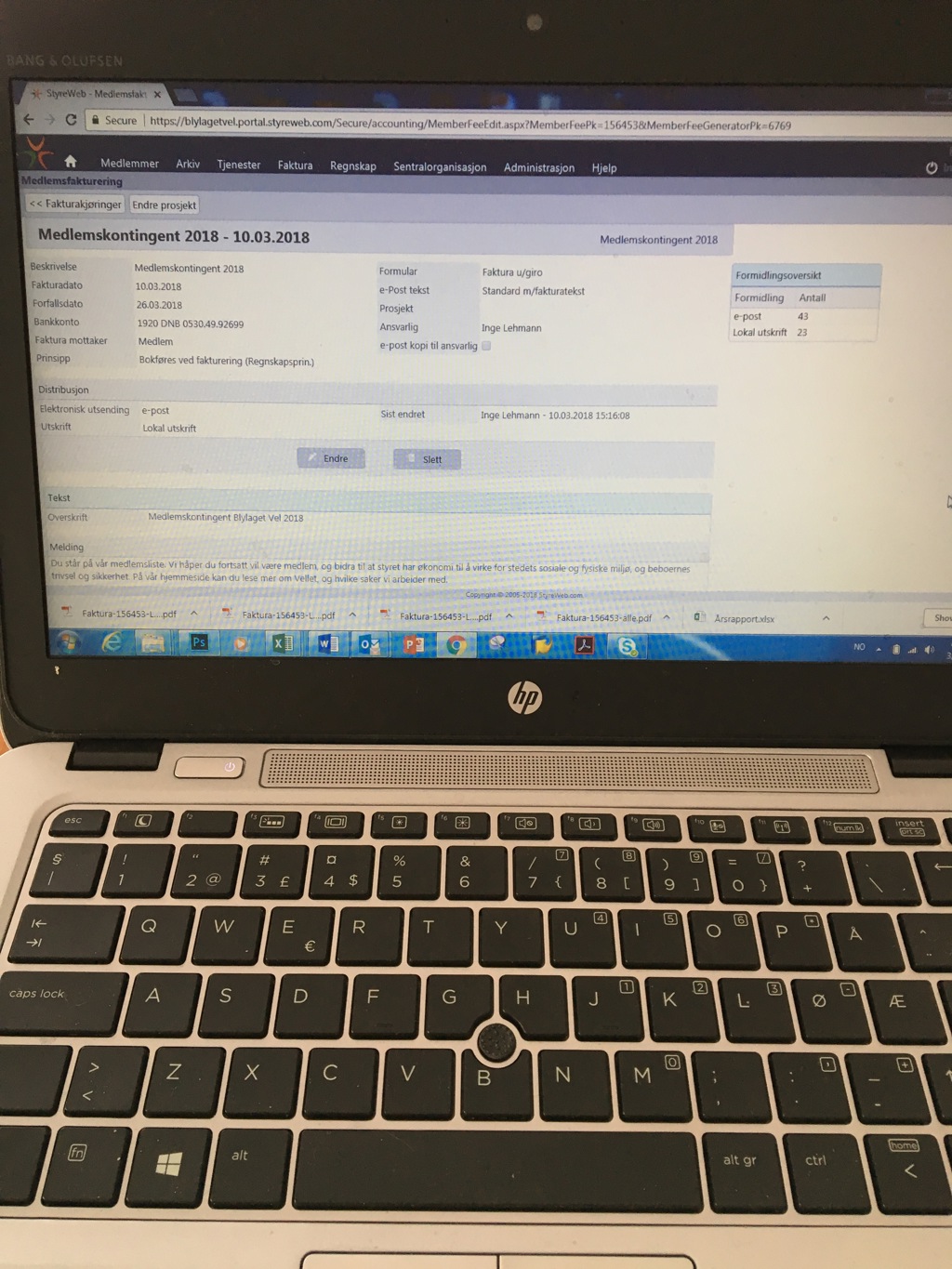 Nå sender vi ut fakturaer på medlemskontingenten for 2018 til alle våre registrerte medlemmer.